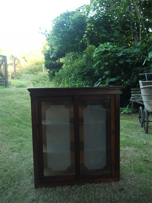 古道具 デザインスリガラスの引き戸キャビネット